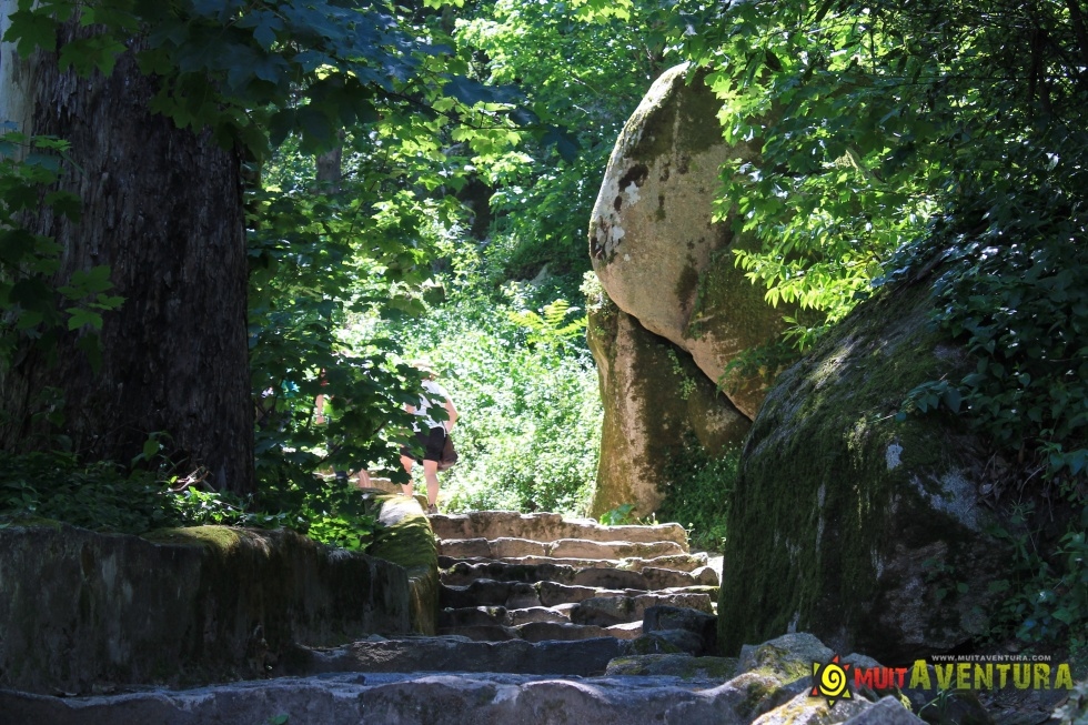 Percurso a iniciar na sede da Muitaventura, descendo até à Vila de Sintra, parte pela Regaleira, Quintas dos Castanheiros, Quinta dos Alfinetes até Galamares e subida para a Vila de Sintra e S. Pedro.